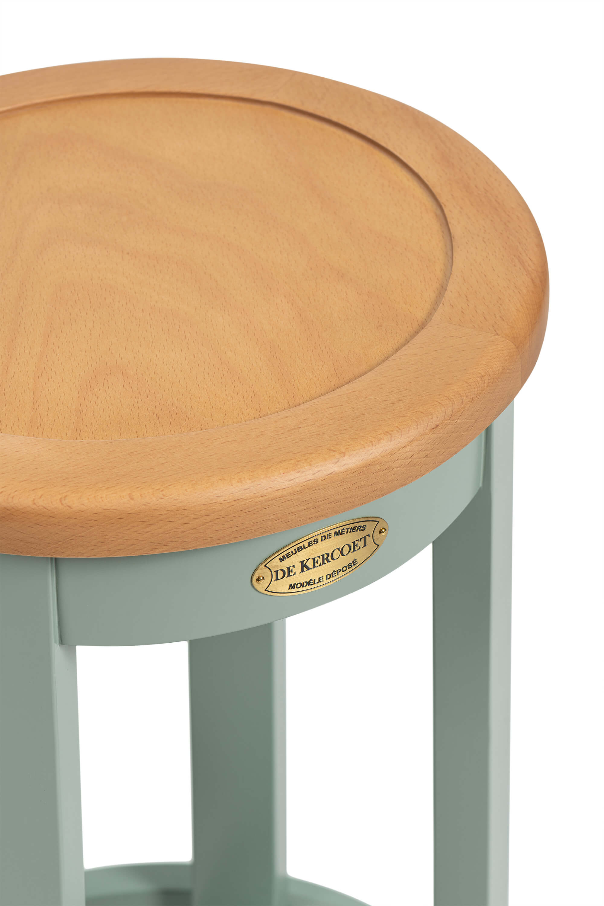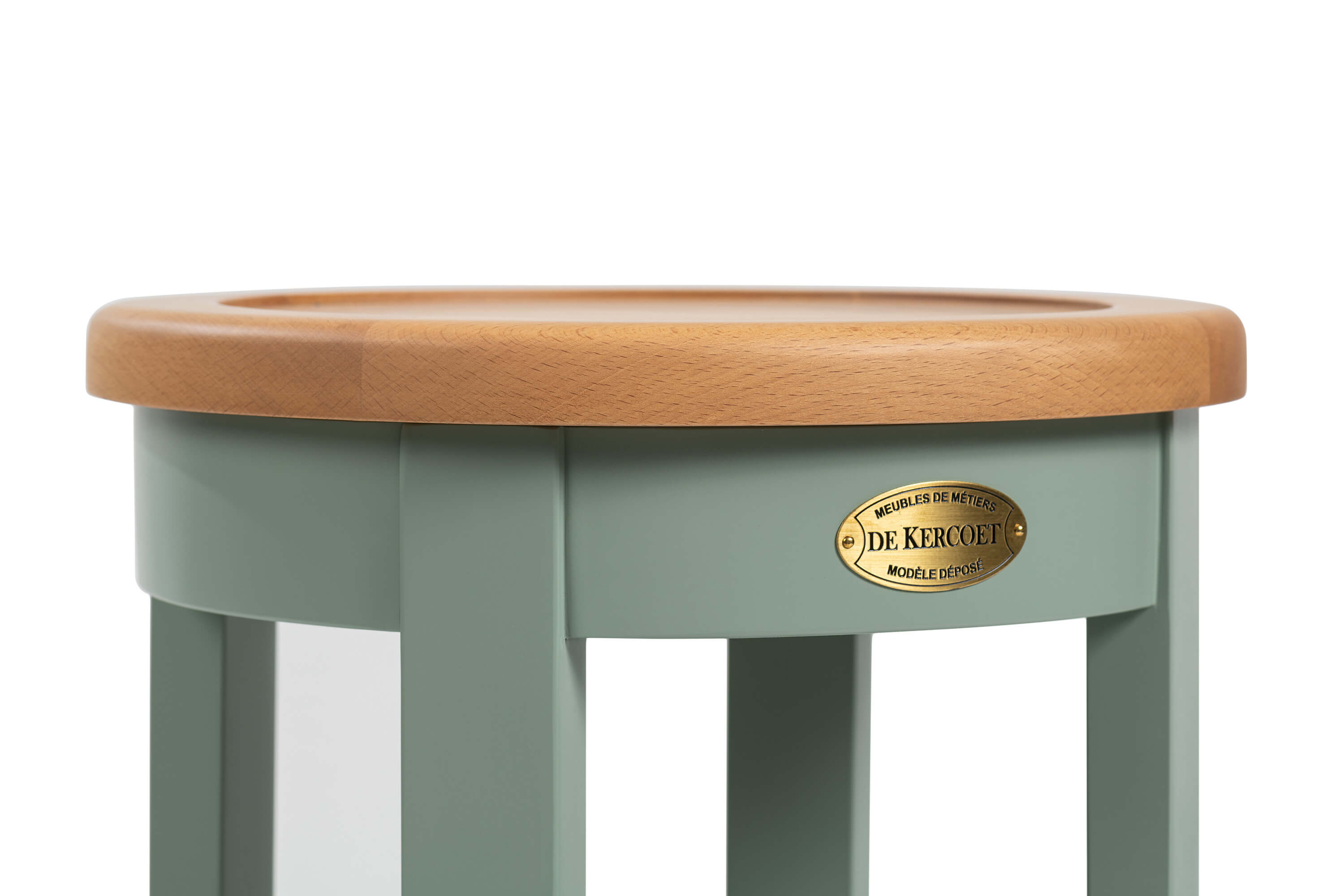 L’assise, réalisée en hêtre avec une finition naturelle Vieux Bois (C02),, apporte une touche de charme intemporel, tandis que ses pieds, disponibles dans 13 teintes exclusives de la palette De Kercoet ou en Vieux Bois (C02), offrent une personnalisation harmonieuse et polyvalente.