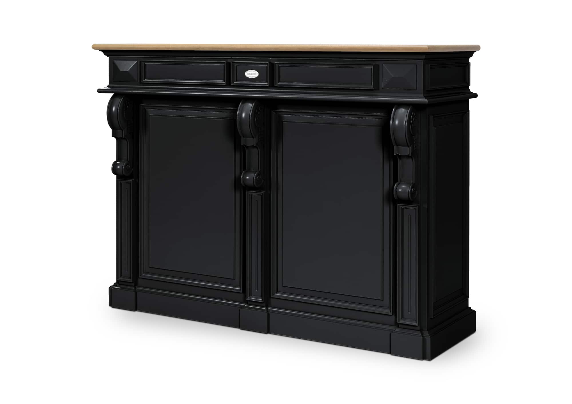 Option: marble or granite top. Marius is available in 2 lengths and 11 colors. The top has an “OLD WOOD” finish and is doubly protected by a colorless anti-stain varnish that will save the day more than once!