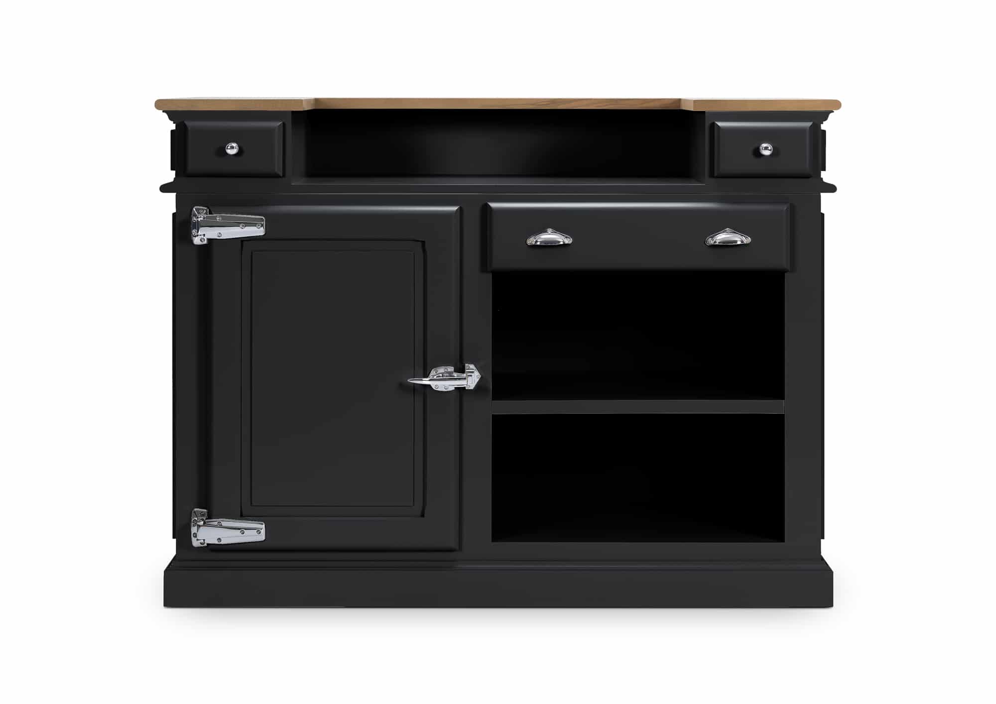 At the back of the bar, enjoy storage space with three drawers on runners with integrated “soft close” shock absorbers. Cupboard with middle shelf.