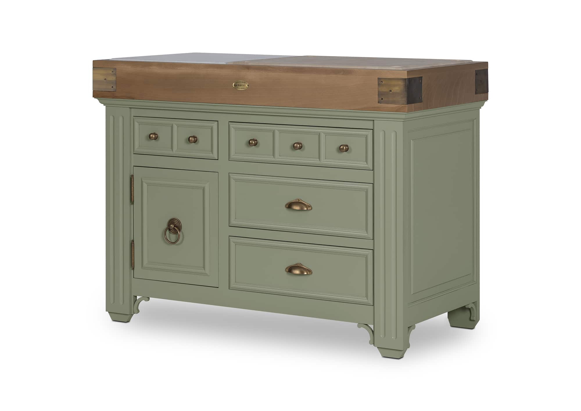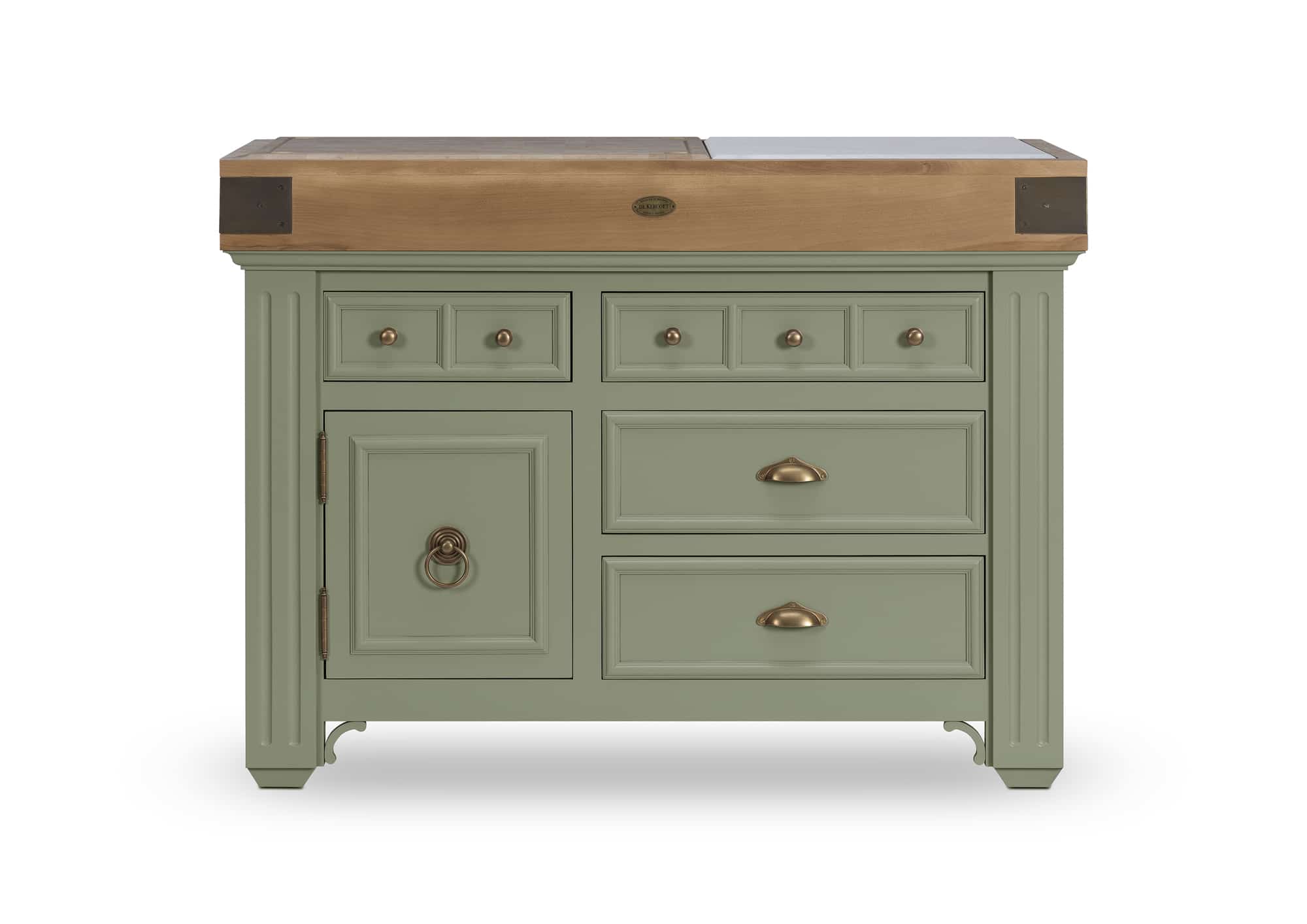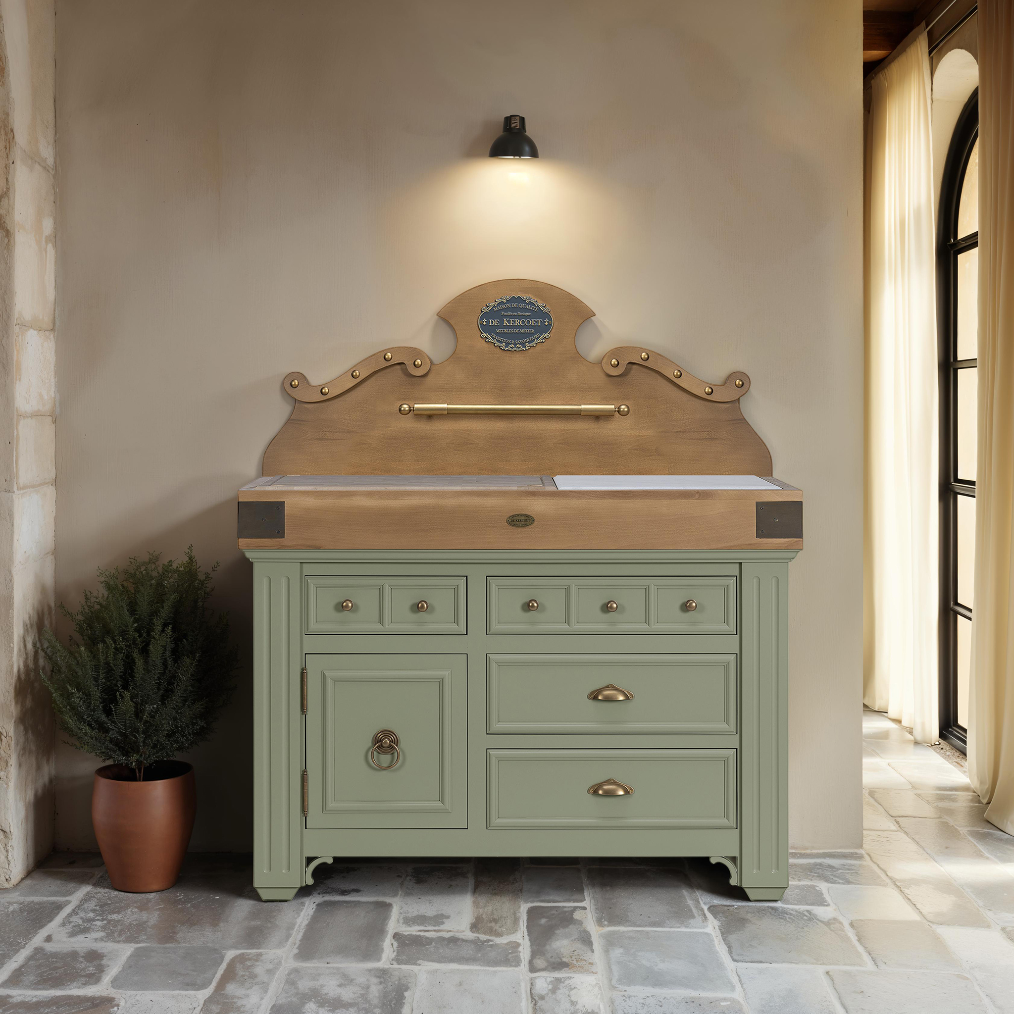 Hoëdic MM block: a block that combines elegant lines with brass hardware reminiscent of our beautiful country homes. In short, this is our “madeleine de Proust”: family furniture in all its glory, French charm par excellence! This kitchen unit is an elegant addition to your living space. Its four drawers are on runners with integrated “soft close” shock absorbers. 1 cupboard with middle shelf. Optional Hoëdic MM credenza.