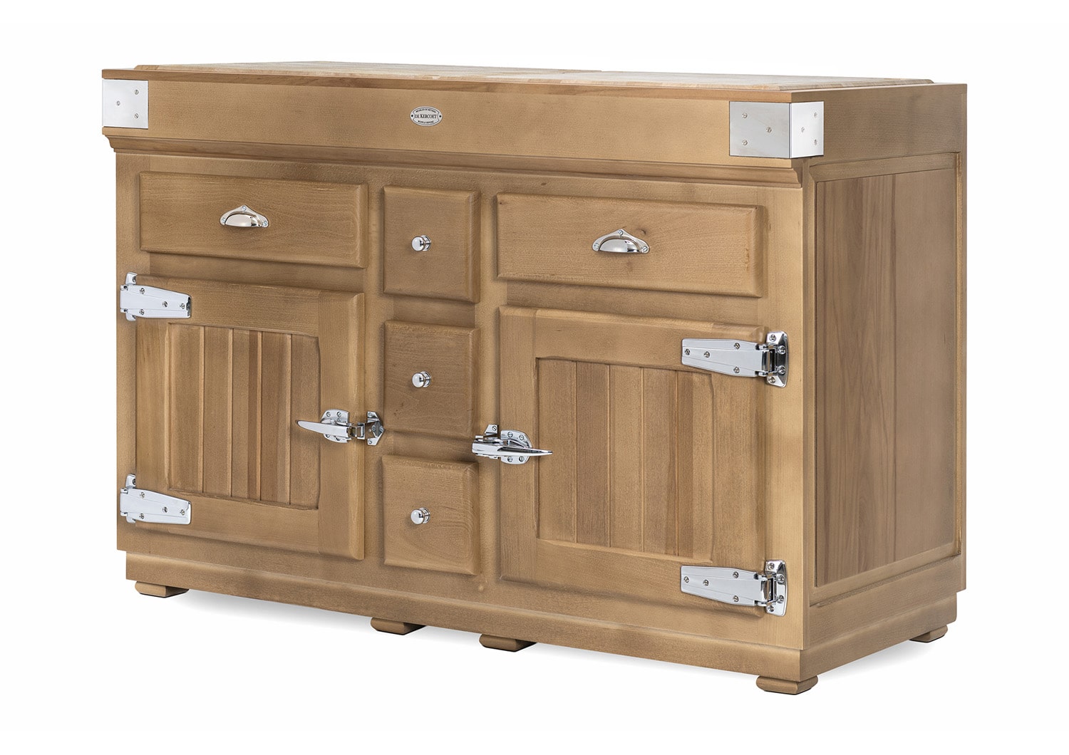 Billot Sauzon GM : le billot inspiré des glacières anciennes. SAUZON est “la” collection incontournable et iconique DE KERCOET depuis de nombreuses années. La chaleur du bois liée à la robustesse d’une quincaillerie industrielle. Le billot SAUZON avec son élégante ceinture en finition “vieux bois” se décline dans les 11 teintes originales qui composent la palette DE KERCOET. Également disponible en finition intégrale “vieux bois”. La collection SAUZON existe en version îlots, meubles dessertes et meubles de cuisine flottants. Tous nos modèles sont déposés.